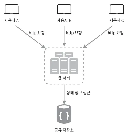 웹 서버는 사용자의 상태정보가 필요할 경우 공유 저장소로부터 해당 정보를 가져온다.