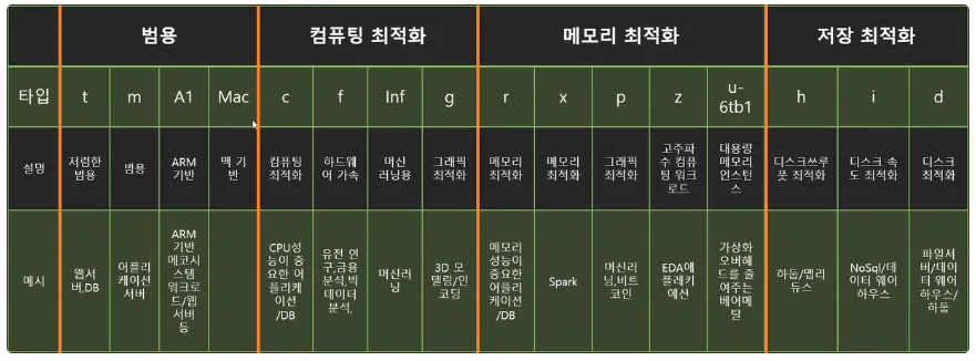 EC2는 사용용도 맞게 최적화된 여러가지 유형을 제공한다.