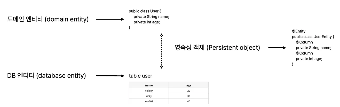 이를 연결해주는 것이 영속성 엔티티 즉, JPA Entity다.