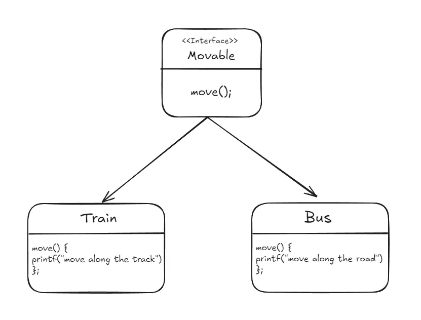 Bus와 Train을 Movable interface를 정의하여 상속받아 구현체를 작성했다고 가정하자