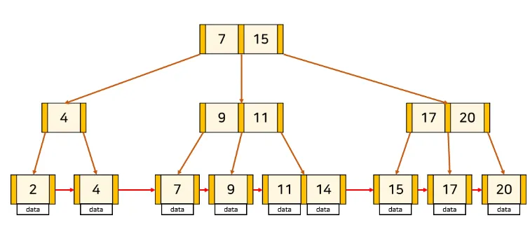 리프 노드가 연결 리스트로 이어져 있기 때문에 특정 범위 내의 데이터를 빠르게 검색할 수 있고