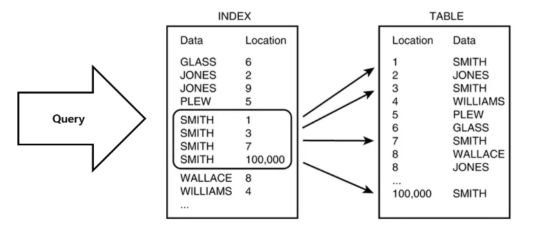 인덱스는 추가적인 쓰기작업과 저장공간을 사용하여 데이터베이스 테이블의 검색 속도를 향상시키기 위한 자료구조이다.